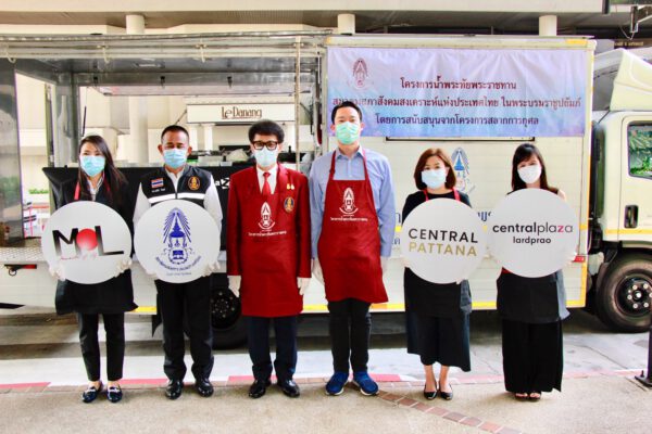 ส่วนวันจันทร์ที่ 7 มิถุนายน 2564 สมาคมสภาสังคมสงเคราะห์แห่งประเทศไทย ในพระบรมราชูปถัมภ์ ร่วมกับมูลนิธิมิราเคิล ออฟไลฟ์ และศูนย์การค้า เซ็นทรัลพลาซาลาดพร้าว จัดพิธีเปิดโครงการครัวจิตอาสา ในโครงการน้ำพระทัยพระราชทาน จัดเลี้ยงอาหารมอบให้แก่บุคลากรทางการแพทย์ที่มาบริการฉีดวัคซีนให้แก่พี่น้องประชาชน ณ ศูนย์การค้าเซ็นทรัลพลาซ่าลาดพร้าว
