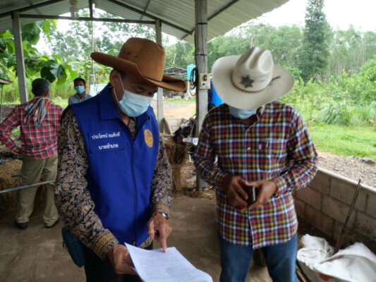นายอำเภอนาโยง จังหวัดตรัง พร้อมด้วยสัตวแพทย์จากสำนักงานปศุสัตว์จังหวัดตรัง ลงพื้นที่พบเกษตรกรที่เลี้ยงโคเนื้อ เพื่อให้ความรู้และเฝ้าระวังโรคลัมปี สกิน ในโคและกระบือ ที่มีการแพร่ระบาดในหลายพื้นที่ และให้คำแนะนำรวมถึงสังเกตอาการของโคและกระบือ ในขณะที่เกษตรกรผู้เลี้ยงโคเนื้อ ได้รับผลกระทบจากการแพร่ระบาดของโควิด -19 ทำให้พ่อค้าจาก 3 จังหวัดชายแดนภาคใต้ไม่สามารถเดินทางมาซื้อโคไปจำหน่ายได้
