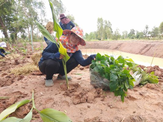 โดยการเนินกิจกรรมในครั้งนี้ ได้รับความร่วมมือจากเจ้าหน้าที่พัฒนาชุมชนนักพัฒนาพื้นที่ต้นแบบ (นพต.) และผู้นำชุมชน นำพืชสมุนไพรและพันธุ์ไม้ที่ใช้สำหรับย้อมสีธรรมชาติ (ย้อมผ้า) เช่น ต้นมะม่วง ต้นกล้วย ขิง ข่า ตะไคร้และหญ้าแฝก ฯลฯ มาร่วมกันปลูก ณ แปลงตัวอย่างพื้นที่ศูนย์เรียนรู้ชุมชนต้นแบบการพัฒนาคุณภาพชีวิต ระดับตําบล (Community Lab Model for quality of Life : CLM) นายเสมียน ขันจันทา อายุ 65 ปี บ้านเลขที่ 81 หมู่ที่ 6 บ้านาคอม ต.นาตาล อ.นาตาล จ.อุบลราชธานี มีผู้อาศัยในครัวเรือน 3 คน ประเภทของเอกสารสิทธิเป็นโฉนด พื้นที่ทั้งหมด 15 ไร่ 2 งาน 42 ตารางวา ได้สมัครเข้าร่วมโครงการฯ 15 ไร่ ใช้แบบมาตรฐานของกรมการพัฒนาชุมชน สัดส่วนแบบ 2:3 ประเภทดินร่วนปนทราย หน่วยทหารพัฒนาที่จะดำเนินการขุด คือหน่วยทหารพัฒนาการเคลื่อนที่ 51 (นพค.51 อำนาจเจริญ) เริ่มดำเนินการขุดเมื่อวันที่ 12 พฤษภาคม 2564 ปัจจุบันผลดำเนินการขุดปรับพื้นที่เสร็จเรียบร้อยแล้ว และมีฐานเรียนรู้ที่จะดำเนินการในพื้นที่เรียนรู้ชุมชนต้นแบบการพัฒนาคุณภาพชีวิต (Community Lab Model for quality of life : CLM) ระดับตำบลที่จะดำเนินการในพื้นที่เเห่งนี้ จำนวน 9 ฐาน ได้แก่ ฐานการเรียนรู้กสิกรรมธรรมชาติ ฐานการเรียนรู้คนหัวเห็ด ฐานการเรียนรู้คนเอาถ่าน ฐานการเรียนรู้คนรักษ์แม่ธรณี ฐานการเรียนรู้คนรักป่า ฐานการเรียนรู้คนรักษ์น้ำ ฐานการเรียนรู้คนรักษ์แม่โพสพ ฐานการเรียนรู้คนมีไฟ เเละฐานการเรียนรู้หัวคันนาทองคำ