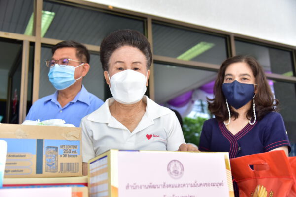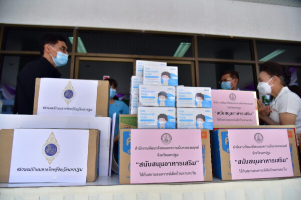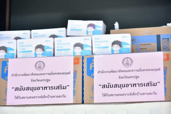 โอกาสนี้ โดยเหล่ากาชาดจังหวัดนครปฐม และชมรมแม่บ้านมหาดไทยจังหวัดนครปฐม ได้สนับสนุนข้าวสาร น้ำดื่ม บะหมี่กึ่งสำเร็จรูป และหน้ากากอนามัยสำหรับเด็ก เพิ่มเติมอีกด้วย