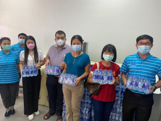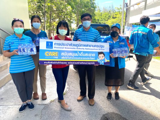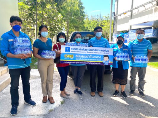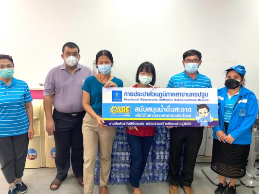 วันที่ 18 มิถุนายน 2564 นายสมชาย ชื่นชม ผู้จัดการการประปาส่วนภูมิภาค สาขานครปฐม และคณะมอบน้ำดื่ม จำนวน 1,200 ขวด ให้กับศูนย์บริการฉีดวัคซีนสนามมหาวิทยาลัยราชภัฏนครปฐม โดยมี ผู้ช่วยศาสตราจารย์ ดร.เยาวภา บัวเวช /ดร.ดวงใจ คงคาหลวง ที่ปรึกษาคณบดีคณะวิทยาการจัดการและอาจารย์วีรกิจ อุฑารสกุล รองคณบดี เป็นผู้รับมอบ
