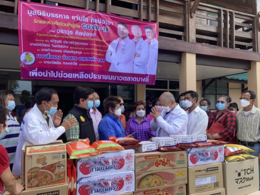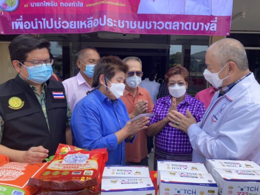 เมื่อเวลา 13.00 น. วันที่ 20 มิ.ย. นายณัฐวุฒิ ประเสริฐสุวรรณ สส.สุพรรณบุรี นายนิติวัฒน์ จันทร์สว่าง ผู้ช่วยเลขานุการรมว.กระทรวงเกษตรและสหกรณ์ นายกิจภาษณ์ เกียรติชูสกุล สจ.เขต 1 อ.สองพี่น้อง ร่วมกันเป็นตัวแทนมูลนิธิบรรหาร แจ่มใส ศิลปอาชา และนายวราวุธ ศิลปอาชา รมว.กระทรวงทรัพยากรธรรมชาติและสิ่งแวดล้อม มอบสิ่งของ ข้าวสารอาหารแห้ง เครื่องใช้จำเป็นให้นางไพรัช ทองคำใส นายกเทศมนตรีเทศบาลเมืองสองพี่น้อง เพื่อนำไปช่วยเหลือประชาชนชาวตลาดบางลี่