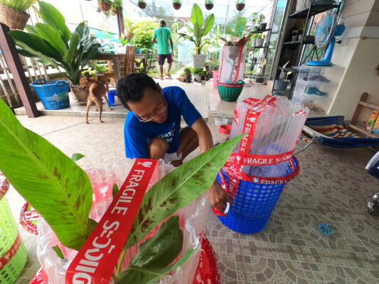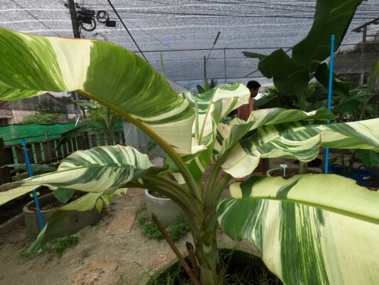 ที่บ้านเลขที่ 63/51 หมู่บ้านพรทวี หมู่ 2 ต.ท่าพญา อ.ปะเหลียน จ.ตรัง พบกับนายวรวุฒิ กังแฮ อายุ 53 ปี อดีตผู้จัดการทั่วไปโรงแรมดังในจังหวัดกระบี่ ลาออกเพราะพิษโควิด-19 กลับมาอยู่บ้านแต่ด้วยเป็นคนรักต้นไม้ ก่อนที่จะลาออกก็ได้เพาะเลี้ยงกล้วยด่างเป็นงานอดิเรก เมื่อปลายปีที่แล้วโรงแรมมีการปิดให้บริการจึงได้ลาออก ผนวกกับกระแสการเพาะเลี้ยงไม้ด่างเป็นกระแสนิยมที่เริ่มมาแรง มีการซื้อขายไม้ด่างในราคาสูงกว่าพันธุ์ไม้ทั่วไป ตนเองจึงได้ใช้พื้นที่ข้างบ้านประมาณ 30 ตารางเมตร เป็นสวนกล้วยด่างที่มีทั้งต้นพ่อพันธุ์แม่พันธุ์ ต้นอ่อนที่พึ่งแยกหน่อออกมา นับ 100 มีกล้วยด่างสายพันธุ์ไทยและสายพันธุ์นำเข้ามาจากต่างประเทศ อาทิ สายพันธุ์แดงอินโด นำเข้ามาจากประเทศอิโดนิเซีย กล้วยด่างวาค่อม กล้วยด่างฟลอริดา กล้วยเอนเซนเต้ นำเข้ามาจาก สหรัฐอเมริกา สายพันธุ์ไทยก็จะมี กล้วยธานีด่าง กล้วยเทพพนมด่าง กล้วยป่าสตูลด่าง กล้วยป่าสุราษฏร์ธานีด่าง กล้วยป่าตรังทับทิมด่าง และอีกหลายสายพันธุ์ ส่วนราคาจะเริ่มต้นตั้งแต่ 10,000 – 500,000 บาท หรือมากกว่านี้ ขึ้นอยู่กับขนาด อายุ และสายพันธุ์ของกล้วยด่าง ที่ผ่านมาเคยขายวันเดียวได้ 10 ต้น 4 เดือนสร้างรายได้นับล้านบาท การเพราะเลี้ยงกล้วยด่าง มีข้อจำกัดในเรื่องของหน่อกล้วยและต้นกล้ากล้วยด่างโตไม่ทันต่อความต้องการของลูกค้า ต้องมีการสั่งจองและวางมัดจำกันข้ามปี ลูกค้าส่วนใหญ่จะเป็นกลุ่มคนรักกล้วยด่างทั่วประเทศ ส่วนราคาที่สูงเพราะหายากขยายพันธุ์ได้ช้า และที่สำคัญกำลังเป็นกระแสนิยมอยู่ในขณะนี้ แต่ราคาที่สูงไม่มีผลต่อความต้องการของลูกค้า เพราะกล้วยด่างมีค่าทางจิตใจ มากกว่ามาคิดถึงราคา เป็นของสะสม บางคนเลี้ยงกล้วยด่างเพื่อคลายเครียด