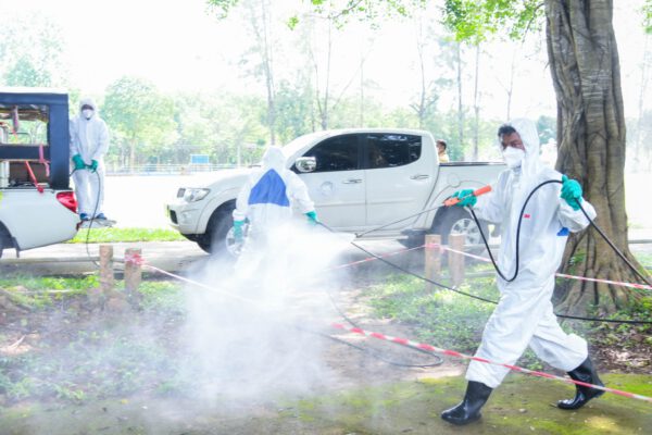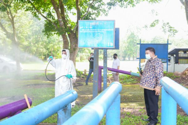 นายก อบจ.ตรัง ห่วงใยพี่น้องชาวตำบลละมอ อำเภอนาโยง นำทีมฉีดพ่นยาฆ่าเชื้อโรคโควิด-19 ป้องกันการแพร่ระบาด