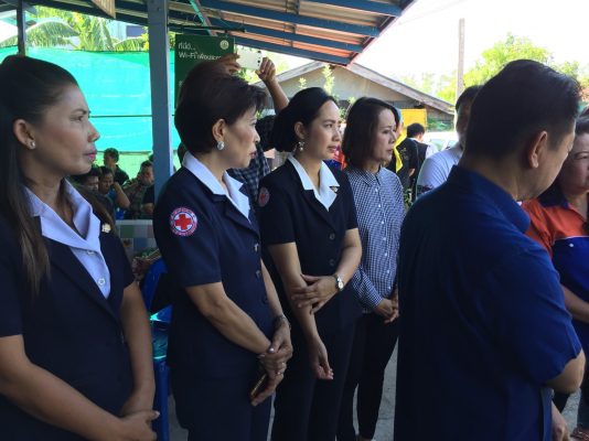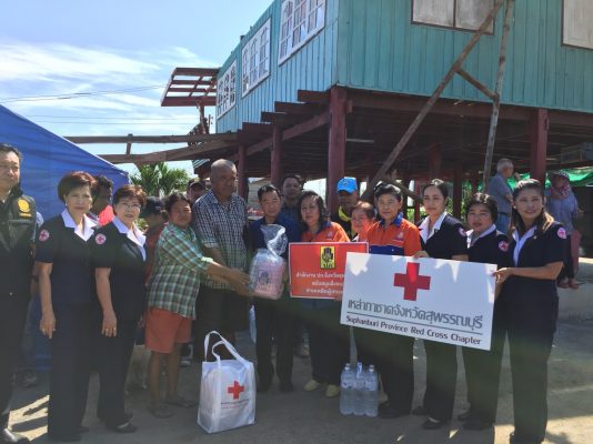 นายนิมิต วันไชยธนวงศ์ ผวจ.สุพรรณบุรี นายสุจินต์ วาจากิจ นายอำเภอเมืองสุพรรณบุรี นางปวีณ์นุช พุ่มพฤกษ์ หัวหน้าสำนักงานป้องกันและบรรเทาสาธารณภัยจังหวัดสุพรรณบุรี พ.ท. อภินันท์ แสงคุ้มภัย หัวหน้าฝ่ายข่าว กกล.รส.มทบ17 พื้นที่สุพรรณบุรี เปิดเผยว่า ขณะนี้ จ.สุพรรณบุรี และคณะเหล่ากาชาดจังหวัดสุพรรณบุรี เดินทางเยี่ยมเยียนให้กำลังใจและมอบเครื่องอุปโภคบริโภคเพื่อบรรเทาทุกข์ในเบื้องต้นให้ชาวบ้านที่ ต.สระแก้ว ต.สนามคลี อ.เมืองสุพรรณบุรี ซึ่งมีบ้านเรือนประชาชนได้รับรายงานความเสียหายจากวาตภัยมากที่สุด