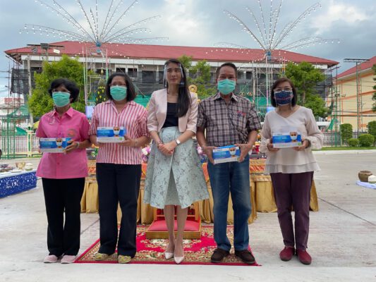 มอบหน้ากากอนามัยจำนวน 2,500 ชิ้นให้กับตัวแทนจากสำนักเขตธนบุรี และตัวแทนจากชุมชนได้แก่คุณศิวรินทร์ จำปานันท์ ชุมชมมัสยิดบ้านสมเด็จ และคุณมณีรัตน์ ขจรกาณจนรัตษ์ชุมชมสี่แยกบ้านแขก เป็นผู้รับมอบพร้อมกับพนักงานในโครงการSKYMED NEW GEN ได้เดินแจกหน้ากากอนามัยให้กับประชาชนบริเวณรอบอนุสาวรีย์สมเด็จพระเจ้าตากสินมหาราช และมอบหน้ากากอนามัยจำนวน 600 ชิ้นให้กับชาวบ้าน 5 ชุมชน โดยมีตัวแทนแต่ละชุมชนเป็นผู้รับมอบ ได้แก่ คุณสมชายเจริญสุข ประธานชุมชนบ้านมอญ, คุณอมรรัตน์ แซ่ลิ้ม ประธานชุมชนสวนอนันต์, คุณรัตนา ศรีจันทร์ อสม.กรรมการชุมชนไผ่เตย, คุณสุรีย์ เก่งชูวงศ์ อสม.กรรมการชุมชนคตกฤช และคุณสมศรี แซ่ลิ้ม อสม.กรรมการชุมชนมะขามแถว