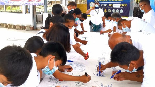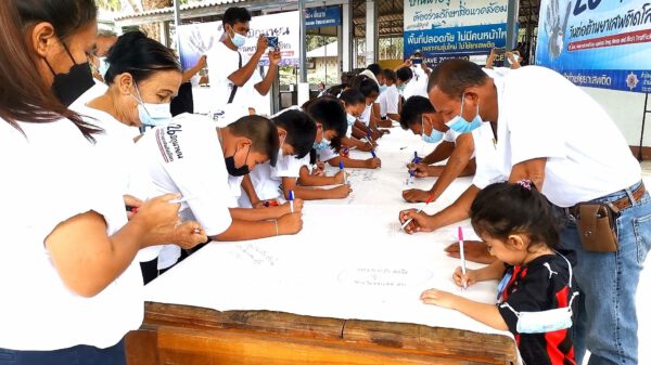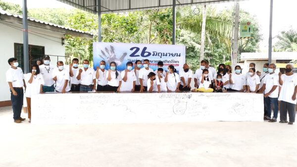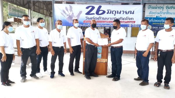 เมื่อเวลา 10.00 น. วันที่ 26 มิ.ย.64 นายวัชรินทร์ จันทร์เดช ผู้ใหญ่บ้านห้วยเกรียบ ม. 4 ต.ทองมงคล อ.บางสะพาน จ.ประจวบคีรีขันธ์ และยังมีตำแหน่งเป็น ประธานเครือข่ายกองทุนแม่ของแผ่นดินจังหวัดประจวบคีรีขันธ์ พร้อมด้วย กำนัน ผู้ใหญ่บ้าน เครือข่ายกองทุนแม่ของแผ่นดินอำเภอบางสะพาน ชาวบ้าน เด็กและเยาวชน ร่วมกันจัดกิจกรรมวันต่อต้านยาเสพติดโลก 26 มิถุนายน โดยมี นายพลาทิป วงศ์ผุดผ่อง กำนันตำบลชัยเกษม อ.บางสะพาน เป็นประธานกล่าวนำในเรื่องของการแก้ไขปัญหายาเสพติด ที่ปัจจุบันมีการระบาดเข้าไปในทุกพื้นที่ จึงต้องร่วมกันป้องกันแก้ไขปัญหา