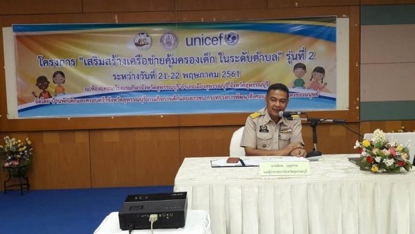 ที่ ห้องประชุมโรงแรมกีฬา อำเภอเมืองสุพรรณบุรี นายพิภพ บุญธรรม รองผู้ว่าราชการจังหวัดสุพรรณบุรี เป็นประธานเปิดการอบรม โครงการเสริมสร้างเครือข่ายคุ้มครองเด็กในระดับตำบล รุ่นที่ 2 ปี 2561 ในพื้นที่จังหวัดสุพรรณบุรี โดยกรมกิจการเด็กและเยาวชน กระทรวงการพัฒนาสังคมและความมั่นคงของมนุษย์ ร่วมกับ องค์การทุน เพื่อเด็กแห่งสหประชาชาติ องค์การยูนิเซฟ ประเทศไทย และมูลนิธิศูนย์พิทักษ์สิทธิเด็ก ได้ดำเนินโครงการพัฒนาศักยภาพเจ้าหน้าที่และผู้ปฏิบัติงานคุ้มครองเด็กระดับตำบล ตั้งปีพ.ศ. 2558 – ปี 2559 นำร่องใน 10 จังหวัด