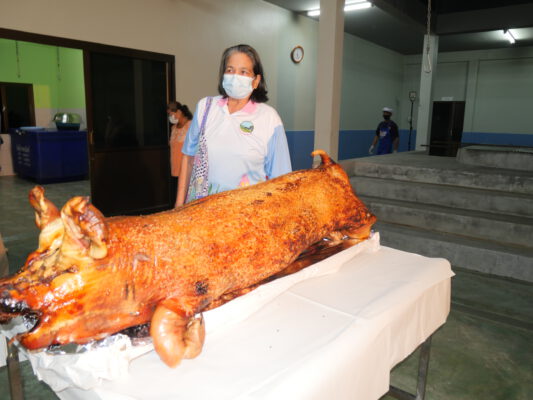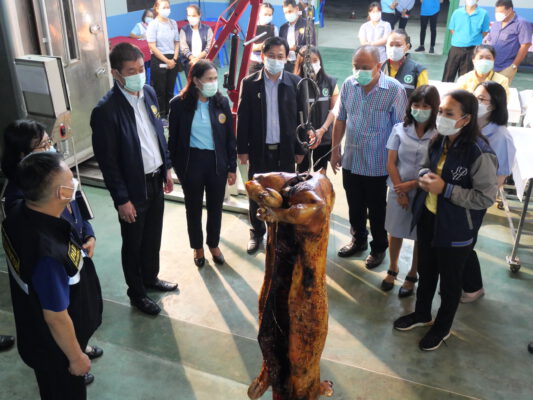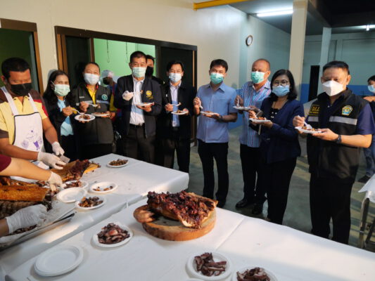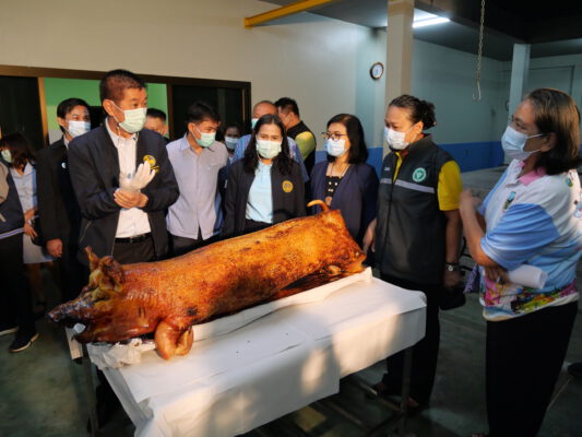 ที่สถานที่ผลิตหมูย่างสินไชยหมูย่าง ต.ทุ่งค่าย อ.ย่านตาขาว จ.ตรัง ซึ่งมีนายพิสิทธิ์ สินไชย อายุ 36 ปี บ้านเลขที่ 186 หมู่ที่ 9 ต.ทุ่งค่าย อ.ย่านตาขาว จ.ตรัง เป็นผู้ประกอบการทำหมูย่าง ทั้งนี้ นายขจรศักดิ์ เจริญโสภา ผู้ว่าราชการจังหวัดตรัง พร้อมด้วย นางสาวสุภากิตติ์ เกลี้ยงสงค์ พาณิชย์จังหวัดตรัง และคณะทำงานควบคุมตรวจสอบกระบวนการผลิตสินค้าสิ่งบ่งชี้ทางภูมิศาสตร์ ลงพื้นที่ตรวจประเมินผู้ประกอบการหมูย่างจังหวัดตรัง ในกระบวนการผลิต “หมูย่างเมืองตรัง” ตามหลักเกณฑ์การใช้ตราสัญลักษณ์สิ่งบ่งชี้ทางภูมิศาสตร์ (GI) เพื่อยกระดับสินค้าสร้างความจกจำในความเป็นเอกลักษณ์ของแหล่งที่มาของสินค้า สร้างความเชื่อถือ และความเชื่อมั่นในคุณภาพและมาตรฐานอย่างต่อเนื่อง โดยส่งเสริมให้เกิดการใช้ตราสัญลักษณ์สิ่งบ่งชี้ทางภูมิศาสตร์ “หมูย่างเมืองตรัง” ในเชิงพาณิชย์ “หมูย่างเมืองตรัง” เป็นหมูย่างที่ผลิตในพื้นที่จังหวัดตรัง มีลักษณะพิเศษทางกายภาพ หนังกรอบ สีเหลืองทอง รสชาติอร่อย กลมกล่อม จนได้รับการขึ้นทะเบียนเป็นสิ่งบ่งชี้ทางภูมิศาสตร์ (GI) “หมูย่างเมืองตรัง” จากกรมทรัพย์สินทางปัญญา กระทรวงพาณิชย์ ซึ่งเป็นเครื่องหมายรับรองคุณภาพและแหล่งที่มาของสินค้า ทั้งนี้เพื่อเป็นการดูแลรักษามาตรฐานของสินค้าสิ่งบ่งชี้ทางภูมิศาสตร์ : GI อย่างต่อเนื่อง คณะทำงานควบคุมตรวจสอบกระบวนการผลิตสินค้าสิ่งบ่งชี้ทางภูมิศาสตร์ ได้กำหนดแผนการลงพื้นที่ตรวจประเมินฯ ผู้ประกอบการ ในระหว่างวันที่ 26 มิถุนายน – 9 กรกฎาคม 2564 โดยมี ผู้ประกอบการหมูย่างจังหวัดตรัง สมัครเข้ารับการตรวจประเมินฯ เพื่อขอใช้ตราสัญลักษณ์สิ่งบ่งชี้ทางภูมิศาสตร์ (GI) จำนวน 25 ราย ซึ่งภายหลังการลงพื้นที่แล้ว คณะกรรมการฯ จะพิจารณาผลผู้ประกอบการหมูย่างที่ผ่านเกณฑ์การประเมินตามคู่มือปฏิบัติงานสำหรับผู้ขอใช้ตรา GI “หมูย่างเมืองตรัง” พร้อมจัดส่งคำขออนุญาตใช้ตราสิ่งบ่งชี้ทางภูมิศาสตร์ให้กรมทรัพย์สินทางปัญญา กระทรวงพาณิชย์ พิจารณาอนุญาตใช้ตรา GI ต่อไป โดยตรา GI ที่ได้รับการอนุญาตจะมีอายุ 2 ปี นับแต่วนที่ได้รับอนุญาต