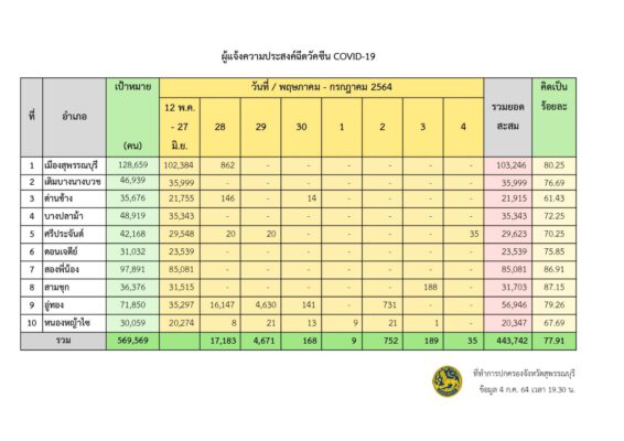 ขณะที่ยอดจำนวนผู้ลงทะเบียนขอรับการฉีดวัคซีนโควิด -19 มียอดรวมสะสม 443,742 คน คิดเป็นร้อยละ 77.91