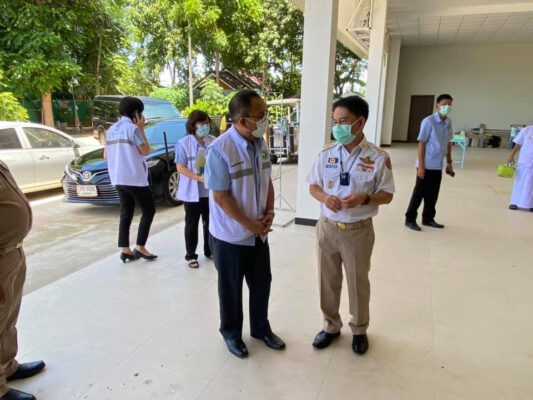 ลงพื้นที่เพื่อสำรวจความพร้อมในการเตรียมตั้ง รพ.สนามแห่งที่ 3 ของจังหวัดสุพรรณบุรี ณ วัดตรีวิสุทธิธรรม ต.สระกระโจม อ.ดอนเจดีย์ ในการรองรับผู้ป่วยโรคไวรัสโควิด-19 ที่เพิ่มมากขึ้นในขณะนี้