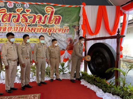 นายสุรจิต วิชชุวรรณ ปศุสัตว์จังหวัดตรัง กล่าวว่ากรมปศุสัตว์ กระทรวงเกษตรและสหกรณ์ กรมควบคุมโรค กระทรวงสาธารณสุข และกรมส่งเสริมการปกครองท้องถิ่น กระทรวงมหาดไทย กรมประชาสัมพันธ์ สำนักนายกรัฐมนตรี ได้ร่วมกันจัดทำโครงการปศุสัตว์ร่วมใจ กำจัดภัยโรคสุนัขบ้า เพื่อเฉลิมพระเกียรติ ศาสตราจารย์ ดร.สมเด็จเจ้าฟ้าฯ กรมพระศรีสวางควัฒน วรขัตติยราชนารี ภายใต้โครงการสัตว์ปลอดโรค คนปลอดภัย จากโรคพิษสุนัขบ้า ตามพระปณิธานฯ ปีงบประมาณ พ.ศ.2564 ขึ้นพร้อมกันทั่วประเทศ ระหว่างวันที่ 1-31 กรกฎาคม 2564 โดยมีวัตถุประสงค์เพื่อให้สุนัขและแมวได้รับการฉีดวัคซีน ป้องกันโรคพิษสุนัขบ้าได้ครอบคลุมทุกพื้นที่ และมีการดำเนินการอย่างต่อเนื่องเป็นประจำทุกปี ดังนั้นเพื่อให้การดำเนินโครงการดังกล่าวเป็นไปอย่างมีประสิทธิภาพ และประสิทธิผล กรมปศุสัตว์ จึงได้กำหนดจัดพิธีเปิดโครงการปศุสัตว์ร่วมใจกำจัดภัยโรคสุนัขบ้า เพื่อเฉลิมพระเกียรติ ศาสตราจารย์ ดร.สมเด็จเจ้าฟ้าฯ กรมพระศรีสวางควัฒน วรขัตติยราชนารี ภายใต้โครงการสัตว์ปลอดโรค คนปลอดภัย จากโรคพิษสุนัขบ้า ตามพระปณิธานฯ ปีงบประมาณ พ.ศ.2564 ขึ้นพร้อมกันทุกจังหวัดในเดือนกรกฎาคม ทั้งนี้ในภาพรวมจังหวัดตรัง สำนักงานปศุสัตว์จังหวัดตรังและสำนักงานปศุสัตว์อำเภอ ได้ออกหน่วยผ่าตัดทำหมัน ฉีดวัคซีนป้องกันโรคพิษสุนัขบ้า จัดกิจกรรมร่วมกับองค์การบริหารส่วนท้องถิ่นต่าง ๆ ตั้งแต่เดือนมีนาคม พ.ศ.2564 เรื่อยมาจนถึงปัจจุบัน และยังคงดำเนินการอย่างต่อเนื่องจนถึง 31 สิงหาคม พ.ศ.2564 ในปีงบประมาณ 2564 โดยการดำเนินงานโครงการประกอบด้วยการฉีดวัคซีนป้องกันโรคพิษสุนัขบ้า การสำรวจและขึ้นทะเบียนสุนัขและแมว การผ่าตัดทำหมัน การประชาสัมพันธ์ให้ความรู้เรื่องโรคพิษสุนัขบ้า และการส่งเสริมให้ประชาชนเลี้ยงสุนัขและแมวอย่างถูกวิธี และมีความรับผิดชอบต่อสัตว์เลี้ยง ซึ่งผลที่คาดว่าจะได้รับคือ สุนัขและแมวได้รับการฉีดวัคซีนป้องกันโรคพิษสุนัข ไม่ปล่อยสัตว์เลี้ยงให้กลายเป็นสัตว์จรจัด สามารถลดปัญหาจำนวนสัตว์จรจัดตามที่สาธารณะ และร่วมกันสร้างพื้นที่ปลอดโรคพิษสุนัขบ้าจังหวัดตรัง และไม่มีคนเสียชีวิตด้วยโรคพิษสุนัขบ้าในอนาคต ซึ่งในการจัดโครงการครั้งนี้ ได้จัดนิทรรศการและกิจกรรมภายในงาน อาทิ การปล่อยปลา หน่วยผ่าตัดทำหมันสุนัข แมว การฉีดวัคซีนป้องกันโรคพิษสุนัขบ้าในสัตว์ การรักษาพยาบาลสัตว์ การให้ความรู้คำแนะนำเกี่ยวกับโรคพิษสุนัขบ้าในสัตว์ การรักษาพยาบาลสัตว์ การให้ความรู้คำแนะนำเกี่ยวกับโรคพิษสุนัขบ้าแ