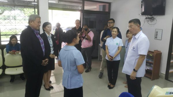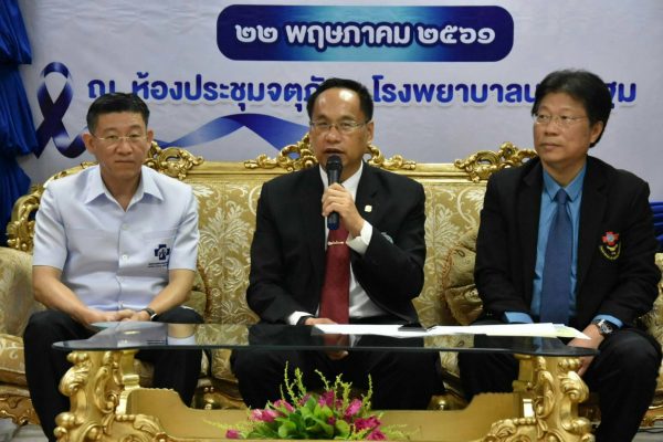 ที่โรงพยาบาลนครปฐม เมื่อวันที่ 22 พฤษภาคม 2561 ทพ.อรรถพร ลิ้มปัญญาเลิศ ผู้ช่วยเลขาธิการสำนักงานหลักประกันสุขภาพแห่งชาติ (สปสช.) นพ.พิศิษฐ์ ศรีประเสริฐ ผู้ตรวจราชการกระทรวงสาธารณสุข เขตสุขภาพที่ 5 และนพ.วีรศักดิ์ ครองลาภเจริญ ผู้อำนวยการโรงพยาบาลนครปฐม พร้อมด้วยผู้แทนเครือข่ายวิชาชีพ 8 จังหวัด เขต 5 ราชบุรี ร่วมแถลงข่าว “นวัตกรรมระบบคัดกรองมะเร็งลำไส้ใหญ่ของเครือข่ายหน่วยบริการในจังหวัดนครปฐม” และมอบอุปกรณ์ตรวจคัดกรอง Fit test จำนวน 101,202 ชุด พร้อมลงพื้นที่ รพ.สต.สามควายเผือก อ.เมือง จ.นครปฐม ร่วมสังเกตการณ์และให้กำลังใจในการเตรียมความพร้อมผู้ป่วยเพื่อรับการคัดกรองมะเร็งลำไส้ใหญ่ และซักซ้อมแนวทางส่งต่ออุจจาระและการแจ้งผลการคัดกรองแก่ผู้ป่วย