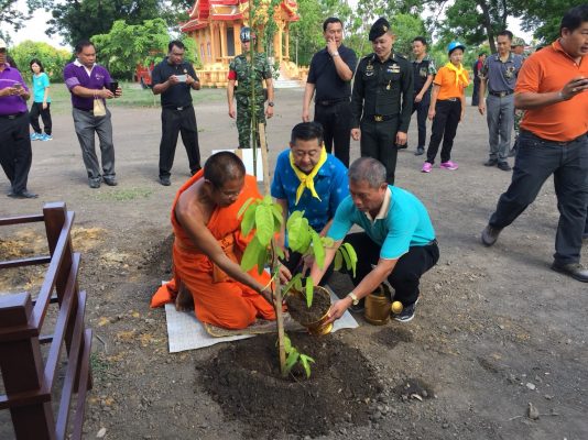 พร้อมกล่าวว่า วันวิสาขบูชาของทุกปี เป็นวันต้นไม้ประจำปีของชาติ ซึ่งได้เชิญชวนให้จัดกิจกรรมวันต้นไม้ประจำปีของชาติมาอย่างต่อเนื่องทุกปี เพื่อเป็นการสร้างและกระตุ้นจิตสำนึกของประชาชน ให้เกิดความรักความหวงแหนทรัพยากรป่าไม้ของชาติ ประกอบกับกระทรวงทรัพยากรธรรมชาติและสิ่งแวดล้อม มียุทธศาสตร์การจัดการป่าไม้และความหลากหลายทางชีวภาพ ในระยะ 20 ปี โดยมีเป้าหมายการเพิ่มพื้นที่ป่าไม้และพื้นที่สีเขียวร้อยละ 40 ของประเทศ และยุทธศาตร์ที่ 3 ของจังหวัดสุพรรณบุรี การส่งเสริมคุณภาพสิ่งแวดล้อมควบคู่การอนุรักษ์ทรัพยากรธรรมชาติสู่ความยั่งยืน นั้น