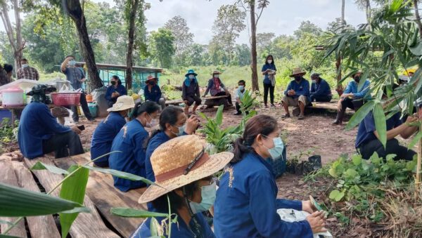 โดย นายสุวัฒนชัย จำปามูล ปราชญ์ชุมชนและเจ้าของแปลงพื้นที 3 ไร่ ได้แลกเปลี่ยนเกี่ยวกับพืชสมุนไพรต้านโรคภัย และโรคโควิด-19 ได้แก่ ต้นโปร่งฟ้า กระชายขาว ดีปรี ขิง ข่า ตะไคร้ เป็นต้น
