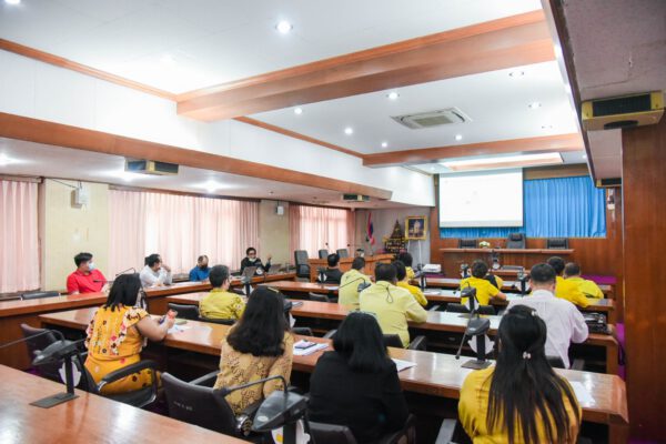 นายบุ่นเล้ง โล่สถาพรพิพิธ นายกองค์การบริหารส่วนจังหวัดตรัง พร้อมคณะผู้บริหาร ปลัดองค์การบริหารส่วนจังหวัดตรัง หัวหน้าส่วนราชการ รับฟังการบรรยายสรุป จาก รศ.ดร. จตุพร แก้วอ่อน อาจารย์ประจำหลักสูตรวิศวกรรมเครื่องกล คณะวิศวกรรมศาสตร์ มหาวิทยาลัยทักษิณ วิทยาเขตพัทลุง และทีมที่ปรึกษา เรื่องการนำเสนอโครงการกำจัดขยะมูลฝอยชุมชนผลิตเป็นพลังงานไฟฟ้า ณ ห้องประชุมสภาองค์การบริหารส่วนจังหวัดตรัง ชั้น 2