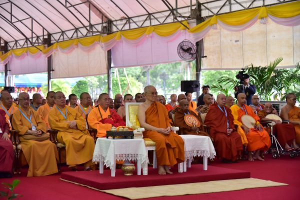สำหรับพิธีเจริญพระพุทธมนต์ และเจริญจิตภาวนาถวายพระพรชัยมงคลแด่ สมเด็จพระเจ้าอยู่หัวและสมเด็จพระนางเจ้าสิริกิติ์ พระบรมราชินีนาถ ในรัชกาลที่ 9 สำนักงานพระพุทธศาสนาแห่งชาติ ได้นิมนต์พระสงฆ์ ในเขตปกครองคณะสงฆ์ หนกลาง เข้าร่วมพิธี อีกทั้งคณะประมุขสงฆ์นานาชาติ 84 ประเทศ ผู้นำชาวพุทธนานาชาติ และพุทธศาสนิกชนนานาชาติ ซึ่งได้เดินทางมาร่วมกิจกรรมนานาชาติ ณ ราชอาณาจักรไทย โดยการนำของมหาวิทยาลัยมหาจุฬาลงกรณราชวิทยาลัย ได้เข้าร่วมในพิธีครั้งนี้ และมีนักเรียนกลุ่มโรงเรียนการกุศลของวัดในพระพุทธศาสนา และพุทธศาสนิกชนร่วมในพิธีโดยพร้อมเพรียงกัน