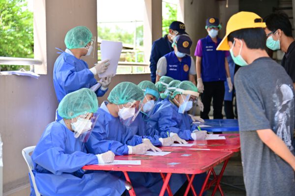 โดยภายในหมู่บ้านดังกล่าว มีผู้ป่วยโควิด-19 ที่กำลังรอเข้ารับการรักษาในโรงพยาบาล อีกทั้งมีประชาชนกลุ่มเสี่ยงสูงที่กำลังกักตัวอยู่ภายในห้องพักของตนเอง ซึ่งเจ้าหน้าที่ได้ทำการตรวจแบบ Rapid Antigen Test จำนวน 60 คน ผลการตรวจพบผู้ติดเชื้อโควิด-19 จำนวน 8 คน จึงได้ส่งตัวเข้ารับการรักษาในโรงพยาบาลสนามชุมชน(community Isolation) ณ อาคารเฉลิมพระเกียรติ 72 พรรษามหาราชินี วัดไร่ขิง พระอารามหลวง