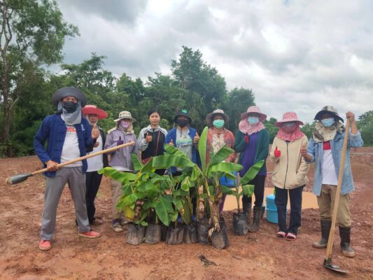ในส่วนของเจ้าหน้าที่พัฒนาชุมชนผู้รับผิดชอบ ได้ให้คำแนะนำเพิ่มเติม ถึงการที่กรมการพัฒนาชุมชน กระทรวงมหาดไทย ได้น้อมนำแนวพระราชดำริของ สมเด็จพระกนิษฐาธิราชเจ้า กรมสมเด็จพระเทพรัตนราชสุดาฯ สยามบรมราชกุมารี สร้างความมั่นคงทางอาหาร สู่ปฏิบัติการ 90 วัน ปลูกผักสวนครัวเพื่อสร้างความมั่นคงทางอาหารรอบ 2 ตามแนวทางของกรมการพัฒนาชุมชน ในพื้นที่แปลงโดยปลูกผักสวนครัว เช่นกล้วย 5 หน่อ มะละกอ 5 ต้น พืชสวนครัว อื่นๆ โดยเฉพาะ ขิง ตะไคร้ กะเพรา โหระพาบวบ รวมถึงพืชสมุนไพร เช่น กระชาย ฟ้าทะลายโจร ขิง ข่า ตะไคร้ มะกรูด มะนาวกะเพรา โหระพา และพริก โดยเฉพาะการปลูกกระชาย ขิง ฟ้าทะลายโจร เพราะถือเป็นอีกทางเลือกหนึ่งที่สามารถช่วยป้องกันโควิด-19 และบรรเทาอาการเบื้องต้นของไข้หวัดหรือป้องกันการติดเชื้อได้ โดยพบว่าสารสกัดของกระชายขาว สามารถแสดงฤทธิ์ในการต้านไวรัสทั้งในระยะก่อนและหลังการติดเชื้อนอกจากนี้ยังช่วยยับยั้งการแบ่งตัวของเชื้อไวรัสโควิด-19 เช่นเดียวกับ ฟ้าทะลายโจร ซึ่งกรมการแพทย์ กระทรวงสาธารณสุข ให้การรับรองแล้วว่ามีสารแอนโดรกราโฟไลด์ (Andrographolide) ที่สามารถรักษาโรคติดเชื้อไวรัสโคโรนา 2019 ได้ โดยให้รับประทานฟ้าทะลายโจรที่มีปริมาณสารแอนโดรกราโฟไลด์ วันละ 180 มิลลิกรัม เป็นเวลา 5 วัน จะช่วยสร้างภูมิคุ้มกันให้แก่ร่างกาย จะเห็นได้ว่าสมุนไพรไทยมีสรรพคุณที่เป็นประโยชน์อย่างมากมายจนทั่วโลกให้การยอมรับ จึงเป็นจุดแข็งของประเทศไทยที่สามารถนำมาช่วยเหลือให้พี่น้องประชาชนรอดพ้นจากสถานการณ์การแพร่ระบาดของโรคติดเชื้อไวรัสโคโรนา 2019 ได้เป็นอย่างดี สุดท้ายนี้ ขอฝากให้ทุกท่านได้ร่วมกันสร้างความมั่นคงด้านอาหารด้วยการปลูกพืชผักสวนครัวและพืชสมุนไพร ให้เกิดความต่อเนื่อง ให้เป็นทั้งอาหารและยารักษาโรคต่างๆ หลายโรค รวมถึงโรคติดเชื้อไวรัสโคโรนา 2019 (COVID-19) ตามแนวทางของกรมการพัฒนาชุมชน และความรักห่วงใยพี่น้องประชาชน จากท่านสุทธิพงษ์ จุลเจริญ อธิบดีกรมการพัฒนาชุมชน