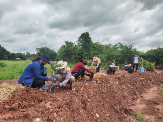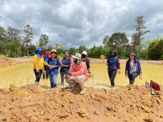 โดยการลงพื้นที่ในครั้งนี้ ได้ติดตามสนับสนุนการพัฒนาพื้นที่ศูนย์เรียนรู้การพัฒนาคุณภาพชีวิตระดับครัวเรือน (Househole Lab Model for quality oflife : HLM) และแปลงพื้นที่ศูนย์เรียนรู้ชุมชนต้นแบบการพัฒนาคุณภาพชีวิตระดับตำบล (Community Lab Model for quality of Life : CLM) เพื่อพัฒนาพื้นที่ เอามื้อสามัคคี ปลูกผักสวนครัวและพืชสมุนไพร ในพื้นที่ตำบลขามเปี้ย ตำบลโนนกุง ตำบลหนองเต่า ตำบลห้วยฝ้าย ตำบลโคกจาน และตำบลตากแดด จำนวน 9 แปลง ได้แก่ นายสายันต์ แก้วพรม, นางมาลัย อ่อนท้าว, นางสาคร ศรีเรือง, นางณีระวรรณ เถาพันธุ์, นางคำผ่อน อ่อนท้าว, นางจันที เผ่าสิงห์, นายอุดร หานะสาร, นางพูลทรัพย์ ไม้น้อย, นางสมคิด บุญประสิทธิ์ ซึ่งคณะตรวจติดตามฯ ได้พบปะและให้คำแนะนำเจ้าของแปลงในการวางแผนเพื่อจัดกิจกรรมขับเคลื่อนพัฒนาพื้นที่ศูนย์เรียนรู้ฯ และจัดกิจกรรมเครือข่ายการเรียนรู้แก่ชุมชนผ่านการเอามื้อสามัคคีในแปลงที่ดำเนินการขุดปรับพื้นที่แล้ว นอกจากนั้น ยังได้ให้คำแนะนำและห่วงใยพื้นที่แปลง ถึงแม้การพัฒนาพื้นที่จะดำเนินตามแบบโคกหนองนา และแนวทางมาตฐานกรมฯ แต่เนื่องจากฝนที่ตกอย่างหนักในช่วงนี้ จึงขอให้ครัวเรือนต้นแบบได้นำพืชมาปลูกบริเวณคันดินและดำเนินการคลุมดิน เพื่อให้คันดินยึดกันได้ดีขึ้น พร้อมกันนี้ ขอให้พัฒนาพื้นที่เพื่อปลูกผักสวนครัว เพื่อสร้างความมั่นคงทางอาหาร และปลูกพืชสมุนไพร เช่น กระชาย ฟ้าทะลายโจร เพื่อป้องกันและบรรเทาโรคติดเชื้อไวรัสโคโรนา 2019 (COVID-19) รวมถึงแนะนำให้จัดทำแผนและวางแผนการจัดกิจกรรมเครือข่ายเอามื้อสามัคคีต่อไปด้วย
