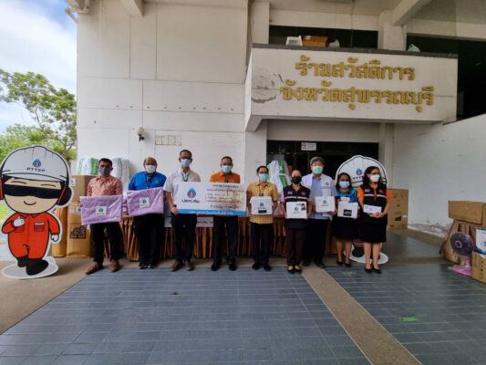 เช้าวันนี้ (21ก.ค.64) เวลา 10.30 น.ที่บริเวณด้านหน้าโรงอาหาร ศาลากลาง จ.สุพรรณบุรี นายปรีชา ทองคำ และนายนพฤทธิ์ ศิริโกศล รองผู้ว่าราชการจังหวัดสุพรรณบุรี รับมอบเครื่องนอน ประกอบด้วยผ้าห่ม หมอน ผ้าปูที่นอน จำนวน 100 ชุดจากนายชาญยุทธ์ นันทสุทธิวารี หัวหน้างานปฏิบัติการโครงการ สุพรรณบุรี ผู้แทน บริษัทปตท.สผ.