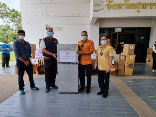 รับมอบมอบตู้เย็น จากสำนักงานโยธาธิการและผังเมือง จ.สุพรรณบุรี รับมอบบะหมี่กึ่งสำเร็จรูปพร้อมเงินสดจำนวน 5,300 บาท จากศูนย์ส่งเสริมอุตสาหกรรมที่ 8 โครงการจิตอาสา กสอ. รับมอบที่นอนจากร้านบิ๊กโสภาเจริญ สำหรับใช้ในโรงพยาบาลสนาม ศูนย์ห่วงใยคนสุพรรณบุรี แห่งที่ 3 ขนาด 100 เตียง ที่วัดตรีวิสุทธิธรรม อ.ดอนเจดีย์ จ.สุพรรณบุรี ซึ่ง จะเปิดให้บริการในเร็วๆนี้ และโรงพยาบาลสนามระดับอำเภอต่างๆ