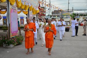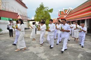 ต่อจากนั้น ผู้ว่าราชการจังหวัดสุพรรณบุรี ได้นำหัวหน้าส่วนราชการ ข้าราชการ นักเรียน นักศึกษา พ่อค้า ประชาชน เข้าร่วมพิธีเวียนเทียน เนื่องในวันวิสาขบูชา ประจำปี 2561 เพื่อการแสดงตนเป็นพุทธมามกะ ในกิจกรรมส่งเสริมพระพุทธศาสนา เนื่องในเทศกาลวันวิสาขบูชา ประจำปี 2561 ณ บริเวณพระวิหารหลวงพ่อโต วัดป่าเลไลยก์วรวิหาร อำเภอเมือง จังหวัดสุพรรณบุรี