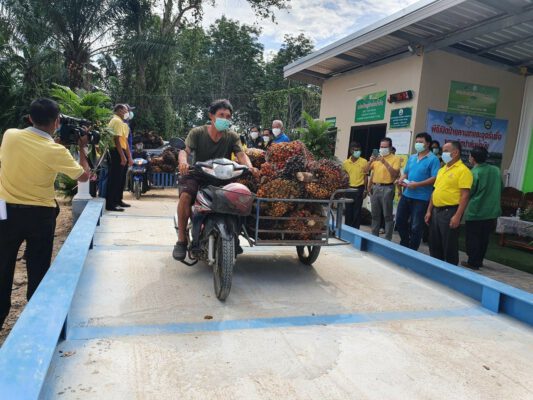 จังหวัดตรัง เปิดลานเทและจุดรับซื้อผลผลิตปาล์มน้ำมัน กิจกรรมแปลงใหญ่ปาล์มน้ำมัน โดยแปลงใหญ่ปาล์มน้ำมันนาโต๊ะหมิง หมู่ที่ 1 ตำบลนาโต๊ะหมิง อำเภอเมืองตรัง จังหวัดตรัง ได้สนับสนุนงบประมาณในการดำเนินงานโครงการ 1 ใน 16 แปลง เพื่อดำเนินการกิจการลานเทปาล์มน้ำมันเพื่อรับซื้อปาล์มน้ำมันของสมาชิก งบประมาณ 3,000,000 บาท