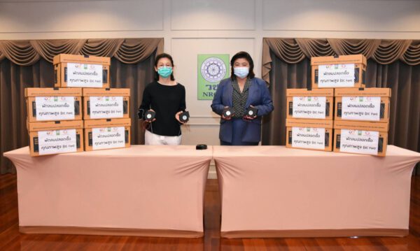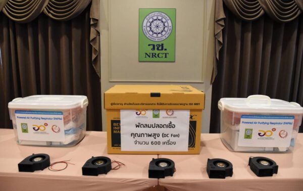 พร้อมนี้ผู้อำนวยการสำนักงานการวิจัยแห่งชาติ ได้มอบพัดลมปลอดเชื้อคุณภาพสูง (DC Fan) ให้สมาคมส่งเสริมการรับช่วงการผลิตไทย จำนวน 600 เครื่อง โดยคุณรุ่งรัตน์ ศิริรัตนา พานิชย์ ผู้บริหารสมาคมส่งเสริมการับช่วงการผลิตไทยเป็นผู้รับมอบสำหรับชุดพัดลมปลอดเชื้อคุณภาพสูง (DC Fan) ได้รับการสนับสนุนจากบริษัท เดลต้าอีเลคโทรนิคส์ (ประเทศไทย) จำกัด (มหาชน) ซึ่งเป็นอุปกรณ์สำคัญสำหรับชุด PAPR โดยพัดลมจะดูดอากาศจากภายนอกผ่านตัวกรองอากาศ เพื่อเปลี่ยนให้เป็นอากาศที่สะอาดแล้วจ่ายลมให้กับหน้ากากป้องกันเชื้อโรคความดันบวกสำหรับบุคลากรทางการแพทย์ที่ต้องสัมผัสใกล้ชิดกับผู้ป่วย อีกด้วย
