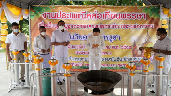 สำนักงานพระพุทธศาสนาจังหวัดตรัง ร่วมกับเทศบาลตำบลโคกหล่อและวัดสาริการาม จัดพิธีหล่อเทียนพรรษาและถวายเทียนพรรษา เนื่องในเทศกาลวันอาสาฬหบูชาและวันเข้าพรรษา ประจำปี 2564 เพื่อส่งเสริมให้พุทธศาสนิกชนได้เข้าวัดปฏิบัติธรรม บำเพ็ญศาสนกิจและการปฏิบัติบูชาคุณพระรัตนตรัย ชำระจิตใจให้สะอาดผ่องใส ละความชั่วมุ่งทำความดี ท่ามกลางมาตรการควบคุมและป้องกันโควิด-19
