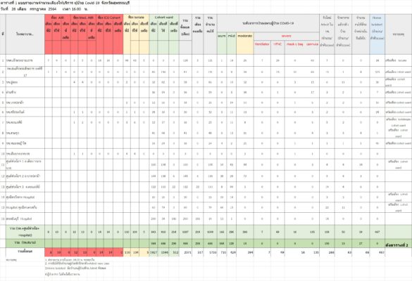 คณะกรรมการโรคติดต่อ จ.สุพรรณบุรี แจ้งจำนวนเตียงรองรับผู้ป่วย COVID-19 และสถานการณ์การติดเชื้อ COVID-19