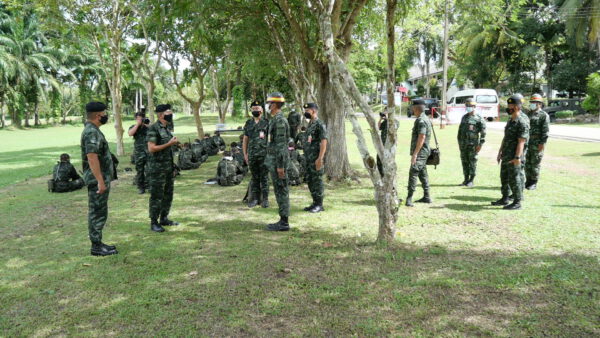 ที่ศูนย์ฝึกทหารใหม่ กองพันทหารราบที่ 4 กรมทหารราบที่ 15 ค่ายพระยารัษฎานุประดิษฐ์ อำเภอห้วยยอด จังหวัดตรัง พล.ต.ศานติ ศกุลตนาค ผู้บัญชาการกองพลทหารราบที่ 5 ค่ายเทพสตรีศรีสุนทร อำเภอทุ่งสง จังหวัดนครศรีธรรมราช เดินทางมาตรวจการฝึกทหารใหม่ผลัดที่ 1/2564 โดยมี พ.อ.เฉลิมพล เทโหปการ ผู้บังคับกองพันทหารราบที่ 4 กรมทหารราบที่ 15 และครูฝึกร่วมให้การต้อนรับ ทั้งนี้พล.ต.ศานติ ศกุลตนาค ผู้บัญชาการกองพลทหารราบที่ 5 ค่ายเทพสตรีศรีสุนทรได้สอบถามความเป็นอยู่ของทหารใหม่จากผู้บังคับกองพันฯและคณะครูฝึก และได้เน้นย้ำในการฝึกว่าในช่วงแรกนี้ให้ค่อยๆฝึกไปก่อน อีกทั้งครูฝึกต้องคอยตรวจเช็คอาการของทหารใหม่ว่ามีไอ เจ็บคอ หรือประสาทรับรสได้หรือไม่ หากทหารมีอาการดังกล่าวให้แยกออกจากกลุ่มไปกักตัวทันที ให้ตั้งข้อสงสัยป่วยเป็นโควิด-19 ไว้ก่อนและนำแพทย์มาทำการสวอป หาเชื้อทันที และต้องสอบสวนโรคให้ชัด จัดพื้นที่สำหรับกักตัวหากพบผู้ต้องสงสัย นอกจากนี้ค่ายทหารจะไม่ให้บุคคลภายนอกเข้าโดยเด็ดขาด ส่วนทหารใหม่นั้นจะงดปล่อยตัวกลับบ้าน เนื่องจากสถานการณ์การแพร่ระบาดของโควิด-19 ยังไม่น่าไว้วางใจ