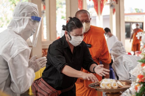 วันที่ 31 กรกฎาคม2564 ที่ฌาปนสถาน วัดไผ่ล้อม ต.พระปฐมเจดีย์ อ.เมือง จ.นครปฐมผู้สื่อข่าวได้พบกับ นางณัฐศิธาฎา กลิ่นประทุม อายุ 45 ปี พี่สาวของนายบุญปลูก กลิ่นประทุม อายุ 41 ปี เป็นชาวจังหวัดนครปฐมที่เสียชีวิตจากการติดเชื้อโควิด-19 ที่ โรงพยาบาลนครปฐม ซึ่งได้โทรติดต่อมายังวัดไผ่ล้อม เพื่อขอฌาปนกิจศพ น้องชาย หลังจากก่อนหน้านี้เจ้าหน้าที่โรงพยาบาลนครปฐมโทรมาแจ้งว่าน้องชายได้เสียชีวิตด้วยโรคโควิด-19แล้ว หลังจากวางสาย ก็มีสายโทรศัพท์ไม่ทราบว่าเป็นเจ้าหน้าที่ที่ไหน ชื่ออะไร โทรเข้ามาแจ้งว่าการดำเนินการศพน้องชายเริ่มต้นจนเผาเสร็จที่วัดมีค่าใช้จ่ายหนึ่งหมื่นห้าพันบาท เพราะขณะนี้จังหวัดนครปฐมมีคนตายด้วยโควิดเยอะ จึงได้โทรสอบถามที่วัดไผ่ล้อมโดยตรงตามที่เห็นในเพจเฟสบุ๊ค ก็ได้รับแจ้งว่าฟรีทุกกรณี ไม่มีค่าใช้จ่าย จึงได้ติดต่อให้วัดไผ่ล้อม ให้ช่วยเป็นผู้ประสานดำเนินการให้ทั้งหมด และยังได้รับความเมตตาจาก พระครูปลัดสิทธิวัฒน์ หลวงพี่น้ำฝน เจ้าอาวาสวัดไผ่ล้อม เป็นประธานในพิธีให้ด้วย และคณะสงฆ์วัดไผ่ล้อมได้มีการจัดพิธีสวดพระอภิธรรม บังสุกุล กรวดน้ำเพื่ออุทิศส่วนกุศลให้กับดวงวิญญาณ น้องชายคือนายบุญปลูก กลิ่นประทุม ผู้เสียชีวิตให้ครบถ้วนตามกระบวนการ และมีญาติเพียง 3-4 คนร่วมไว้อาลัยครั้งสุดท้าย