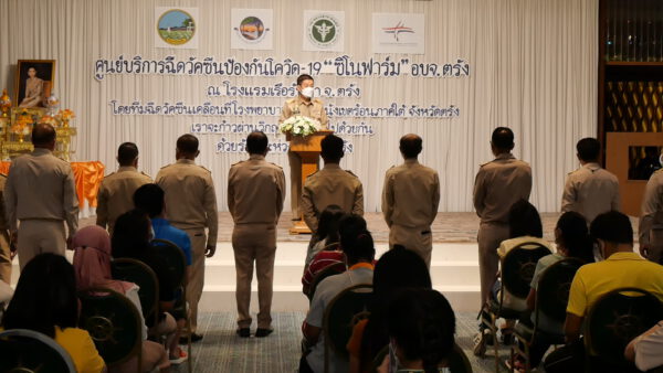 ที่โรงแรมเรือรัษฎา อำเภอเดมืองตรัง จังหวัดตรัง นายขจรศํกดิ์ เริญโสภา ผู้ว่าราชการจังหวัดตรัง เป็นประธานในพิธีเปิดโครงการฉีดวัคซีนชิโนฟาร์ม ป้องกันโรคโควิด-19 ให้กับประชาชนกลุ่มเป้าหมาย ทั้งนี้องค์การบริหารส่วนจังหวัดตรัง ร่วมกับจังหวัดตรัง สำนักงานสาธารณสุขจังหวัดตรัง โรงพยาบาลตรัง และศูนย์บริหารสถานการณ์การแพร่ระบาดของโรคติดเชื้อไวรัสโคโรนา 2019 จังหวัดตรัง (ศบค. ตรัง) จัดโครงการให้บริการฉีดวัคซีนป้องกันโรคโควิด-19แก่ประชาชนในพื้นที่จังหวัดตรัง ตามกลุ่มเป้าหมายที่คณะกรรมการโรคติดต่อจังหวัดตรังกำหนด ซึ่งไม่ซ้ำซ้อนกับเป้าหมายของรัฐบาล โดยมีวัตถุประสงค์เพื่อสร้างภูมิคุ้มกันโรคโควิด-19 ให้กับกลุ่มเป้าหมายไม่น้อยกว่าร้อยละ 70 ของประชาชนในพื้นที่จังหวัดตรัง เพื่อฟื้นฟูสภาพเศรษฐกิจและสังคมให้กลับสู่สภาวะปกติโดยเร็ว รวมทั้งการสนับสนุนการทำงานของคณะกรรมการโรคติดต่อจังหวัดตรังในการป้องกันการแพร่ระบาดของโรคโควิด-19 /กลุ่มเป้าหมายโดยได้รับการจัดสรรวัคซีน ชิโนฟาร์ม จากราชวิทยาลัยจุฬาภรณ์ เป็นจำนวน 40,000 ราย แบ่งเป็น 7 กลุ่ม คือ กลุ่มองค์กรการศึกษา จำนวน 5,000 ราย กลุ่มองค์กรด้านการแพทย์และการสาธารณสุข จำนวน 7,000 ราย ภาคธุรกิจบริการด้านอุปโภคและบริโภค จำนวน 10,500 ราย ภาคธุรกิจการท่องเที่ยวและนันทนาการ จำนวน 4,000 ราย ภาคธุรกิจการขนส่งและโลจิสติกส์ จำนวน 5,500 ราย ภาคธุรกิจการเงิน จำนวน 1,000 ราย หน่วยงานราชการ จำนวน 7,000 ราย สำหรับแผนจัดสรรวัคซีนตัวเลือกชิโนฟาร์มที่องค์กรบริจาคเพื่อผู้ด้วยโอกาสและผู้ที่เข้าไม่ถึงระบบนัดของวัคซีนหลัก จำนวน 4,000 คน ดังต่อไปนี้ คือ กลุ่มผู้นำทางศาสนา (พระ/อิหม่าม ฯลฯ) จำนวน 811 ราย และกลุ่มผู้ที่ไม่สามารถเข้าถึงข้อมูลได้ จำนวน 3,189 รายทั้งนี้ โรงพยาบาลตรัง ซึ่งเป็นหน่วยฉีดวัคซีนได้มีกำหนดการให้บริการฉีดวัคซีนป้องกันโรคโควิด-19แก่กลุ่มเป้าหมาย ระหว่างวันที่ 2 – 6 สิงหาคม 2564