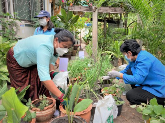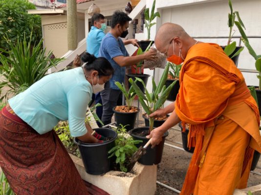 วันอาทิตย์ที่ 1 สิงหาคม พ.ศ. 2564 เวลา 16.00 น. นางอรุณรัตน์ ชิงชนะ พัฒนาการจังหวัดนครราชสีมา พร้อมด้วยนายสิทธิชัย พรทิพย์พิทักษ์ ผู้อำนวยการกลุ่มงานยุทธศาสตร์การพัฒนาชุมชน นางจำเรียง มณีพินิจ ผู้อำนวยการกลุ่มงานส่งเสริมการพัฒนาชุมชน นางสาวธัญลักษณ์ ชันไธสง ผู้อำนวยการกลุ่มงานประสานและสนับสนุนการบริหารงานพัฒนาชุมชน และนักวิชาการ สำนักงานพัฒนาชุมชนจังหวัดนครราชสีมา ร่วมทำกิจกรรมศูนย์แบ่งปันขยายผลการปลูกพืชผักสวนครัว และพืชสมุนไพรไทย “1 วัด 1 สวนสมุนไพร ต้านภัยโควิด – 19” เพื่อเป็นคลังสมุนไพรแบบพึ่งพาตนเอง โดยใช้พื้นที่วัด เป็นพื้นที่แบ่งปันให้กับชุมชนสำหรับนำมาบริโภค และทำเป็นยาสมุนไพร เสริมหรือทดแทนการใช้ยาแผนปัจจุบันในการต้านเชื้อโควิด-19