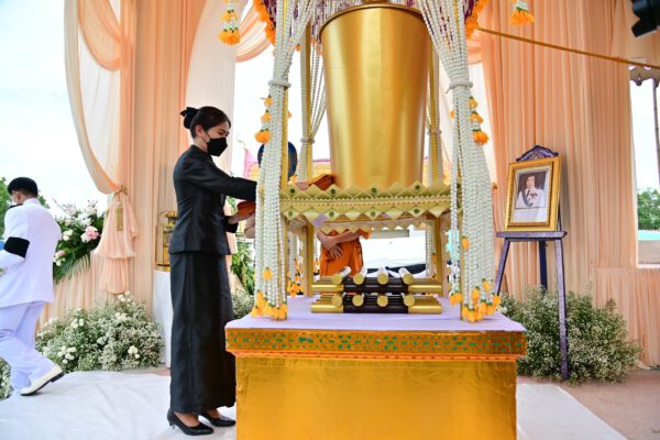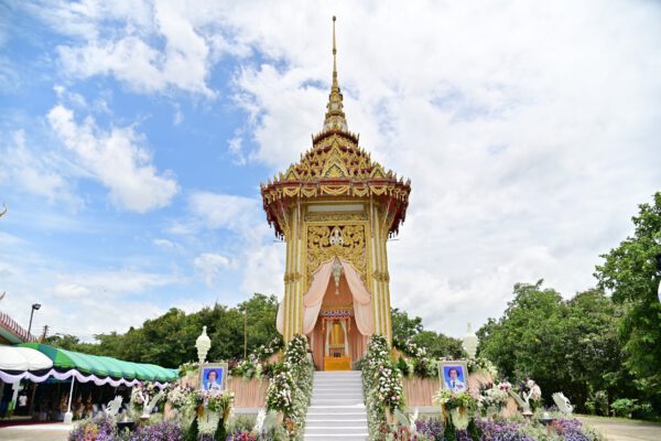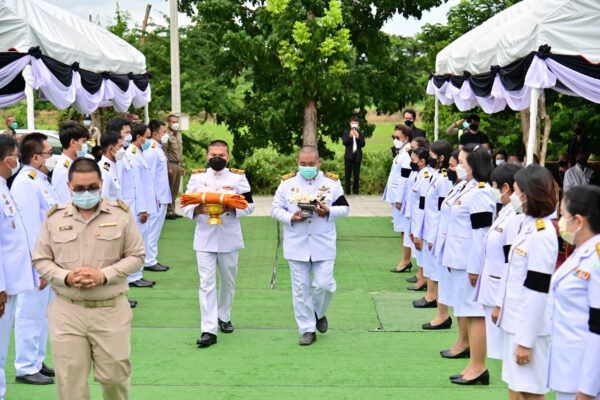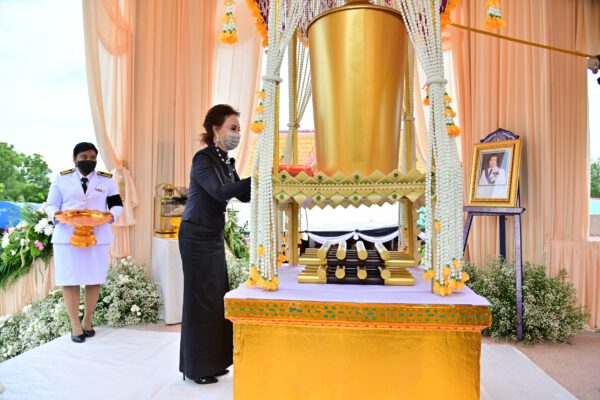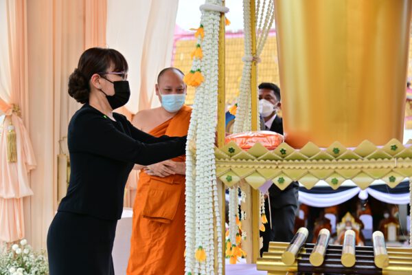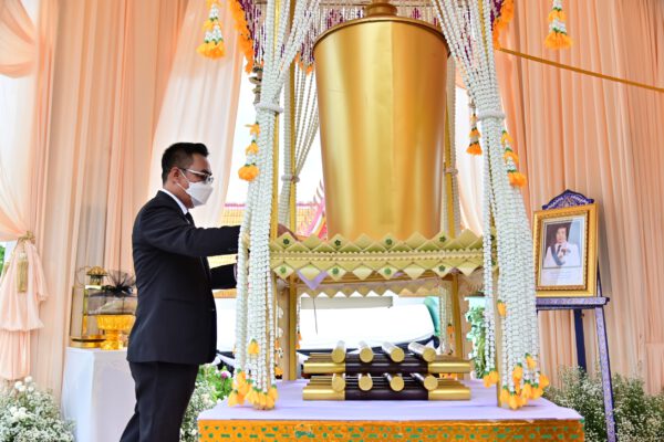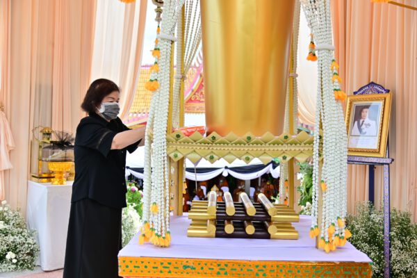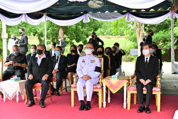 โดยในวันนี้ มล.ปนัดดา ดิศกุล สมาชิกวุฒิสภา และอดีตผู้ว่าราชการจังหวัดนครปฐมเป็นประธานในพิธีพระราชทานเพลิงศพ พร้อมด้วย นายสุรศักดิ์ เจริญศิริโชติ ผู้ว่าราชการจังหวัดนครปฐม นายมนต์เมืองใต้ รอดอยู่ ผู้อำนวยการโรงเรียนราชินีบูรณะนายโอสถ ทองมี อดีตผู้อำนวยการโรงเรียนพระปฐมวิทยาลัย นายอนันต์ เอกเผ่าพันธุ์อดีตผู้อำนวยการโรงเรียน คงทองวิทยา นางฐิติรัตน์ เรืองสังข์ วัฒนธรรมจังหวัดชัยนาท ดร.สุดารัตน์ พงศ์อัมพรไกวัล วัฒนธรรมจังหวัดนครปฐม นายสุธี ศรีเบญจโชตินายกสมาคมส่งเสริมศิลปิน คณะผู้บริหารหน่วยงานภาครัฐ ภาคเอกชน คณาจารย์มหาวิทยาลัยราชภัฏนครปฐม คณาจารย์โรงเรียนราชินีบูรณะ จังหวัดนครปฐมคณาจารย์โรงเรียนสิรินธรราชวิทยาลัย ในพระราชูปถัมภ์ นครปฐม กรรมการสภาวัฒนธรรมจังหวัดนครปฐม และเหล่าลูกศิษย์ เข้าร่วมพิธีฯ เพื่อแสดงความอาลัยเป็นครั้งสุดท้าย