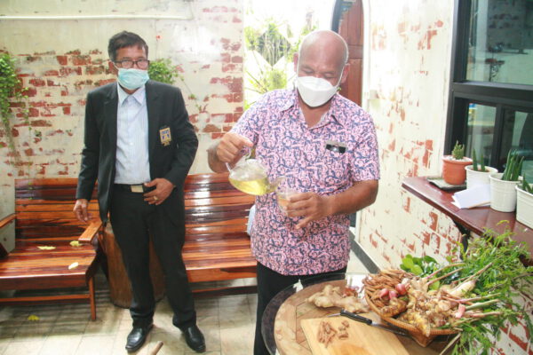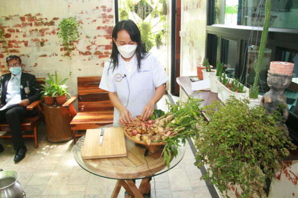 วันที่ 3 ส.ค.64 นายวัชรินทร์ จันทร์เดช กรรมการโครงการพลังสมุนไพร สู้ภัยโควิด-19 ภาคประชาสังคมจังหวัดประจวบคีรีขันธ์ และประธานสภาองค์กรชุมชนจังหวัด นายนันทปรีชา คำทอง ประธานเครือข่ายวิถีเกษตรธรรมชาติ จ.ประจวบฯ น.ส.อภิรดี สังข์ด้วง , น.ส.อุธารัตน์ บุญฤทธิ์ , น.ส.นิชาภา สุวรรณนาค แพทย์แผนไทย นางศิริวรรณ โกสินทร์ เครือข่ายคุ้มครองสิทธิผู้บริโภค และ นายเอเดีย มาร์แอนด์ นักธุรกิจชาวฝรั่งเศส ได้ร่วมกันแถลงความร่วมมือจัดตั้งโครงการสมุนไพร สู้ภัยวิด-19 เพื่อช่วยเหลือชาวจังหวัดประจวบคีรีขันธ์