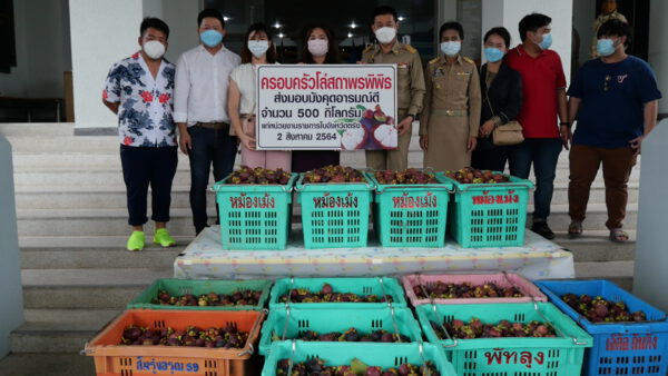 ครอบครัวโล่สถาพรพิพิธ มอบผลไม้มังคุด 500 กิโลกรัม ให้กับจังหวัดตรัง เพื่อนำไปมอบต่อให้กับส่วนราชการและบุคลากรด่านหน้าที่ที่ปฏิบัติหน้าที่ในช่วงของการแพร่ระบาดโควิด 19 เพื่อเป็นการสร้างขวัญและกำลังใจให้กับเจ้าหน้าที่ที่ปฏิบัติงานอย่างเหน็ดเหนื่อย