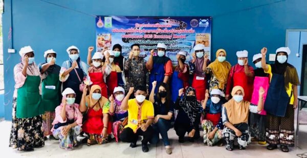 โดยได้จัดกิจกรรมฝึกอบรมให้กับชุมชนในพื้นที่เกาะลิบง จังหวัดตรัง เมื่อวันที่ 29-30 กรกฎาคม 2564 โดยมีนายสิทธิพร จิเหลา นายกองค์การบริหารส่วนตำบลเกาะลิบงเป็นประธานในพิธี มีผู้เข้าร่วมอบรมจำนวนทั้งสิ้น 20 คน จาก 5 ธนาคาร ซึ่งมีวัตถุประสงค์เพื่อให้สมาชิกธนาคารปูม้าชุมชนในพื้นที่เกาะลิบง ที่ผ่านเกณฑ์การประเมินได้เกรด A และ B มีผลิตภัณฑ์ที่แปรรูปมาจากปูม้าสามารถจำหน่ายเพื่อสร้างรายได้ ทำให้มีอาชีพเสริมหรือสร้างอาชีพใหม่ และมีรายได้เพิ่มขึ้น ภายในกิจกรรมการฝึกอบรมผลิตภัณฑ์ที่นำปูม้ามาแปรรูปในครั้งนี้ มีจำนวน 2 ผลิตภัณฑ์ ได้แก่ ทอดมันปูม้า และข้าวเกรียบปูม้า จากการบรรยายควบคู่กับการการสาธิตทำผลิตภัณฑ์ทอดมันปูม้าและข้าวเกรียบปูม้า จึงได้มีการเตรียมวัตถุดิบในการทำผลิตภัณฑ์ เพื่อสาธิตวิธีการทำ พร้อมฝึกปฏิบัติการทำผลิตภัณฑ์ ตลอดจนการบรรจุผลิตภัณฑ์ ทั้งสองชนิดเพื่อได้ได้มาตรฐานและสร้างความมั่นใจให้ผู้บริโภค ซึ่งโครงการดังกล่าวได้มีการต่อยอดกิจกรรมการฝึกอบรมการเชื่อมโยงตลาดออนไลน์เพื่อยกระดับผลิตภัณฑ์ และเพิ่มช่องทางการจำหน่ายผลิตภัณฑ์ที่แปรรูปมาจากปูม้าต่อไปอีกด้วย