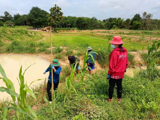 สำหรับในวันนี้ คณะฯ ที่ได้รับมอบหมายได้ดำเนินกิจกรรมตามโครงการฯ ประกอบด้วย 1)มอบหมายเจ้าหน้าที่พัฒนาชุมชน พร้อมนักพัฒนาพื้นที่ต้นแบบ (นพต.) ร่วมกิจกรรมเอามื้อสามัคคี ร่วมกับผู้นำชุมชน และครัวเรือนต้นแบบในพื้นที่ ตามหลักกสิกรรมธรรมชาติ ในพื้นที่ ตำบลโคกจาน ตำบลตากแดด ตำบลคอนสาย ตำบลกุศกรตำบลนาสะไม ราย นายอนันต์ ฉวีรักษ์ ต.โคกจาน, นางภัทรวดี เคนมี ต.โคกจาน, นายวัชรพงษ์ วงศ์ขึง ต.คอนสาย, นายนรินทร์ จันทรา ต.กุศกร และนางพัฒนี คานไชสวงต.นาสะไม โดยมีกิจกรรม ได้แก่ ปรับภูมิทัศน์ ปลูกต้นไม้ 5 ระดับ ปลูกพืชผักสวนครัวและพืชสมุนไพร ห่มดินด้วยฟางข้าว โดยเจ้าหน้าที่พัฒนาชุมชน นักพัฒนาพื้นที่ต้นแบบ(นพต.) และครัวเรือนต้นแบบฯ ร่วมกันปลูกพืช ห่มฟาง พืชผักสวนครัว เพื่อเตรียมความพร้อมสู่การพัฒนาศูนย์เรียนรู้ฯ ต่อไป 2)มอบหมายเจ้าหน้าที่พัฒนาชุมชน พร้อมด้วยนักพัฒนาพื้นที่ต้นแบบ (นพต.) ติดตามการพัฒนาพื้นที่ศูนย์เรียนรู้ต้นแบบฯตามโครงการพัฒนาพื้นที่ต้นแบบการพัฒนาคุณภาพชีวิต ตามหลักทฤษฎีใหม่ ประยุกต์สู่ “โคก หนอง นา พช.” พื้นที่ตำบลขามเปี้ย ได้แก่ นางวิไลวรรณ มาทฤทธิ์ พื้นที่ 1 ไร่,นายนิรันดร์ ละม่อม พื้นที่ 3 ไร่, นายสมชาย สมบูรณ์ พื้นที่ 3 ไร่, นายวิวัฒน์ มาทวี พื้นที่ 3 ไร่,นางสาวกัญญานุช บุญยะ พื้นที่ 3 ไร่ 3)มอบหมายเจ้าหน้าที่พัฒนาชุมชน ร่วมกับ ปลัดอำเภอ ทีมนายช่างองค์กรปกครองส่วนท้องถิ่น ผู้นำชุมชน และนักพัฒนาพื้นที่ต้นแบบ (นพต.) ติดตามสนับสนุนและตรวจรับงาน การพัฒนาพื้นที่ต้นแบบ ศูนย์เรียนรู้ต้นแบบฯ ตามโครงการพัฒนาพื้นที่ต้นแบบการพัฒนาคุณภาพชีวิตตามหลักทฤษฎีใหม่ ประยุกต์สู่ “โคก หนอง นา พช.” พื้นที่ตำบลท่าหลวง แปลง นายบุญศรี คำวัน พื้นที่ 3 ไร่แบบ 2:3 ดินทราย, นางทองปิ่น สายสิทธิ์ พื้นที่ 3 ไร่ แบบ 2:3 ดินทราย, นายศรีศักดิ์ บุญเกิด พื้นที่ 3 ไร่แบบ 1:2 ดินร่วนปนทราย, นางวิลัย เรืองสา พื้นที่ 1 ไร่ แบบ 1:2 ดินทราย, นางบุญมี จรลี พื้นที่ 1 ไร่ แบบ 1:2 ดินทราย ซึ่งเจ้าของแปลงต่างมีความพึงพอใจและยินดีมีความสุข พร้อมนี้ ได้นัดหมายในการทำกิจกรรมเอามื้อสามัคคี ตามแนวทางของกรมการพัฒนาชุมชนและหลักกสิกรรมธรรมชาติต่อไป