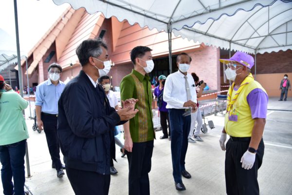 วันที่ 4 ส.ค.2564 นายสุรศักดิ์ เจริญศิริโชติ ผู้ว่าราชการจังหวัดนครปฐม ตรวจเยี่ยมการบริการฉีดวัคซีน ที่หน่วยบริการฉีดวัคซีนอาคารสิริวรปัญญา มหาวิทยาลัยราชภัฏนครปฐม อำเภอเมืองนครปฐม และที่อาคารคอนเวนชั่น มหาวิทยาลัยเกษตรศาสตร์ วิทยาเขตกำแพงแสน อำเภอกำแพงแสน จังหวัดนครปฐม ซึ่งจังหวัดนครปฐมได้เร่งดำเนินการฉีดให้กับกลุ่มผู้สูงอายุ 60 ปีขึ้นไป และกลุ่มเสี่ยง 7 โรคเรื้อรังเข็มแรกที่ลงทะเบียนผ่านหมอพร้อม และช่องทางต่างๆ ของจังหวัดนครปฐม ซึ่งสามารถรองรับการฉีดให้กับประชาชน1,000-1,500 คน/วัน เพื่อสร้างภูมิคุ้มกันหมู่ให้กับประชาชนในการป้องกันและลดอัตราเสี่ยงต่อการติดเชื้อโควิด-19
