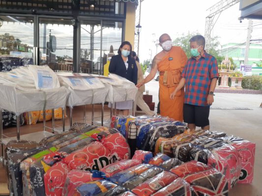 อุปกรณ์เช่น รถเข็นฉีดยา ที่นอน หมอน ผ้าห่ม ปรอท ชุด PPE เครื่องวัดความดันข้าวสาร อาหารแห้ง น้ำดื่ม เป็นต้น