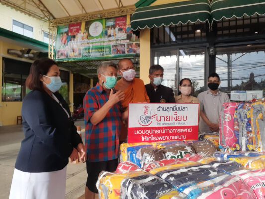 วันที่ 4 สิงหาคม 2564 เวลา 16.30 น. ที่ร้านก๋วยเตี๋ยวลูกชิ้นปลา นายเงี๊ยบ พุทธมณฑลสาย 4 อ.พุทธมณฑล จ.นครปฐม พระครูปลัดสิทธิวัฒน์ หลวงพี่น้ำฝน เจ้าอาวาสวัดไผ่ล้อม นายสมชาติ สาลีพัฒนา เจ้าของร้านก๋วยเตี๋ยวลูกชิ้นปลานายเงี๊ยบ นางสาวภัคภิญญา แซ่อึ้ง นายธงรัฐ บูรณบุรีเดช มอบอุปกรณ์ทางการแพทย์ เครื่องนอน ข้าวสารอาหารแห้ง เพื่อส่งต่อให้กับ โรงพยาบาลปราสาท อ.ปราสาท จ.สุรินทร์ เพื่อกระจายไปเพื่อช่วยเหลือผู้ป่วยที่ติดเชื้อโควิด-19 โดยมี นางสาวกัญชิสา ธนดีรวยรังสี พยาบาลชาวจังหวัดสุรินทร์ เป็นตัวแทนรับมอบ