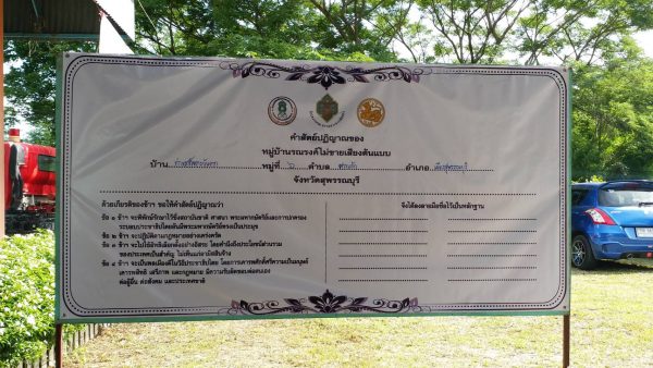 ทั้งนี้ ประชาชนที่เข้าร่วมงานได้ร่วมกันลงนามคำสัตย์ปฏิญาณของหมู่บ้านรณรงค์ไม่ขายเสียงต้นแบบของบ้านท่าเสด็จว่าจะพิทักษ์รักษาไว้ซึ่งสถาบันชาติ ศาสนาและพระมหากษัตริย์ จะปฏิบัติตามกฎหมายอย่างเคร่งครัด จะไปใช้สิทธิเลือกตั้งอย่างอิสระโดยคำนึงถึงประโยชน์ส่วนรวมของประเทศเป็นสำคัญ ไม่เห็นแก่อามิสสินจ้าง และจะเป็นพลเมืองดีในวิถีประชาธิปไตย ต่อสิทธิเสรีภาพของผู้อื่นและรับผิดชอบต่อสังคม
