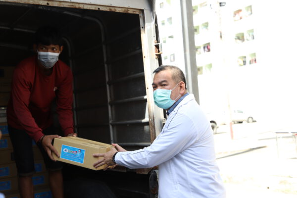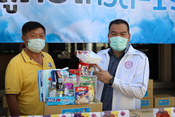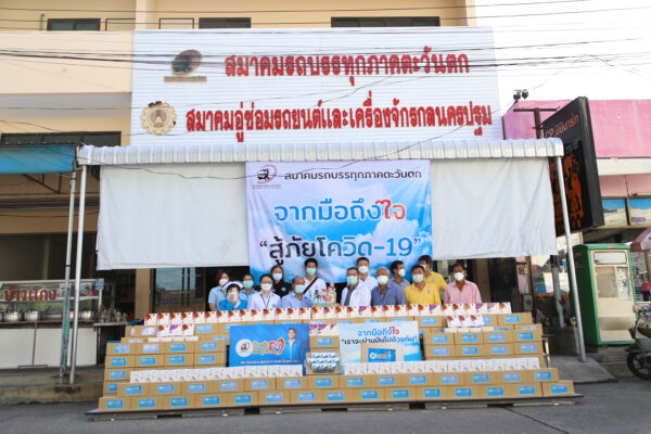 พร้อมคณะกรรมการสมาคม เดินหน้าแจกกล่อง จากมือถึงใจ ภายใต้โครงการ”จากมือถึงใจ เราจะผ่านมันไปด้วยกัน”