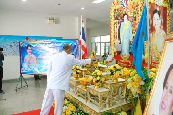 โดยผู้ว่าราชการจังหวัด ประธานในพิธีได้เปิดกรวยกระทงดอกไม้ ธูปเทียนแพ ถวายราชสักการะสมเด็จพระนางเจ้าสิริกิติ์ พระบรมราชินีนาถ พระบรมราชชนนีพันปีหลวง และเจ้าหน้าที่อัญเชิญเงินพระราชทานขวัญถุงกองทุนแม่ของแผ่นดินพร้อมเข็มตราสัญลักษณ์หน้าพระบรมฉายาลักษณ์ โดยผู้ว่าราชการจังหวัดอัญเชิญเงินพระราชทานขวัญถุงพร้อมเข็มตราสัญลักษณ์ กองทุนแม่ของแผ่นดินวางบนพาน ประธานซึ่งเป็นผู้ใหญ่บ้านและตัวแทนหมู่บ้านและชุมชนต้นกล้ากองทุนแม่ของแผ่นดิน เข้ารับเงินพระราชทานขวัญถุงกองทุนแม่ของแผ่นดินและเข็มตราสัญลักษณ์กองทุนแม่ของแผ่นดิน