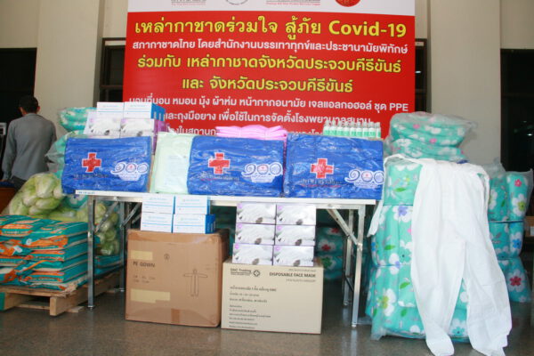 ดังนั้น ทางจังหวัดประจวบคีรีขันธ์จึงได้จัดตั้งโรงพยาบาลสนามเพื่อรองรับผู้ป่วยในทุกอำเภอ และเหล่ากาชาดจังหวัดประจวบคีรีขันธ์ได้เล็งเห็นถึงความปลอดภัยของผู้ป่วยที่ติดเชื้อและบุคลากรทางการแพทย์ เจ้าหน้าที่ผู้เฝ้าระวัง และประชาชนที่อยู่ในพื้นที่กลุ่มเสี่ยง จึงได้ร่วมกับจังหวัดประจวบฯ และ สำนักงานบรรเทาทุกข์และประชานามัยพิทักษ์ จัดขึ้น ภายใต้โครงการเหล่ากาชาดร่วมใจสู้ภัย covid-19 นอกจากนี้ ยังได้มอบหมายสั่งการให้ทุกอำเภอจัดตั้งโรงครัวปันสุข เพื่อเป็นการบรรเทาความเดือดร้อนให้กับประชาชน และครอบครัวที่ตกงาน ขาดรายได้ จากผลกระทบ การระบาดของโรคโควิด-19 อีกด้วย///////