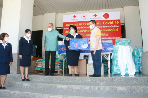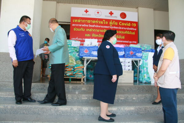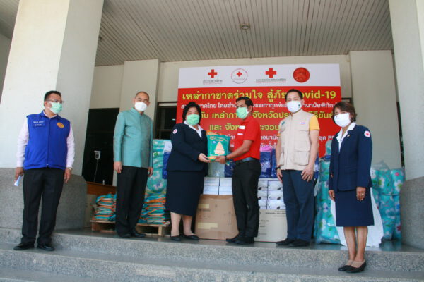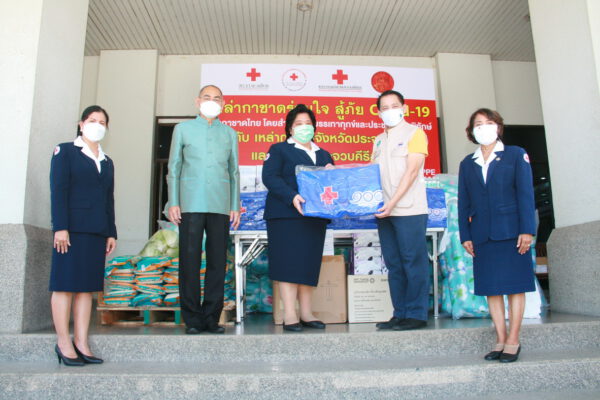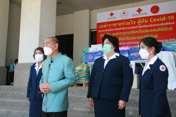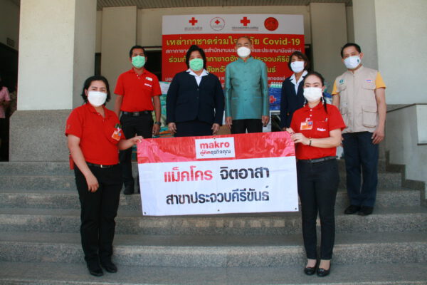 โดยได้มอบอุปกรณ์ต่างๆที่ได้รับการสนับสนุนมาจากผู้ประกอบการเจ้าของกิจการ ห้างร้าน และผู้ใจบุญต่างๆ ประกอบด้วย มุ้ง ผ้าห่ม ที่นอน หมอน แอลกอฮอล์น้ำ ถุงมือยาง ชุด ppe จำนวนอย่างละ 1,000 ชุด และหน้ากากอนามัยสำหรับใช้แล้วทิ้งจำนวน 10,000 ชิ้น ให้กับสาธารณสุขจังหวัดประจวบฯ นำไปใช้ดูแลผู้ป่วยใน รพ.สนาม นอกจากนี้ นายสมโภช เรืองกูล ผู้จัดการห้างแมคโคร สาขาประจวบฯพร้อมพนักงานได้ร่วมนำข้าวสารมามอบให้กับทางผู้ว่าราชการจังหวัด เพื่อนำไปใช้สำหรับการจัดตั้งโรงครัวปันสุข ในแต่ละอำเภอ
