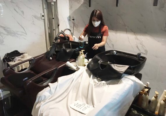 ซึ่งทางร้านก็ได้ให้ความร่วมมือ และที่ผ่านมา ทางร้านก็ปฏิบัติตามมาตรการของสาธารณะสุขมาโดยตลอด ทั้งการฉีดพ่นฆ่าเชื้อ การลงทะเบียนรายชื่อ การวัดอุณหภูมิ ก่อนเข้าใช้บริการ การเปลี่ยนหน้ากากอนามัย พอมาถึงวันที่ต้องปิดร้าน ในระลอกนี้ ก็รู้สึกใจหาย รีบทำงานตั้งแต่เช้า จนถึงค่ำ เก็บทำความสะอาดอุปกรณ์ และร้าน ลูกค้าก็ทยอยมาตัดผมทั้งวัน จนถึงช่วงค่ำ ที่ผ่านมา พอมาถึงสถานการณ์สั่งปิดระลอกนี้ เราก็นำบทเรียนระลอกแรกมา เราก็เตรียมแผนสำรองไว้บ้าง ในการรับมือ ทั้ง ในเรื่องการ เตรียมเงินสำรอง สำหรับจ่ายค่าลูกน้อง ค่าเช่า ค่าน้ำ ค่าไฟ ค่าบ้าน ค่ารถ ภาระที่เราต้องรับผิดชอบ เพราะอย่างที่ร้านมีช่างประมาณ 4-5 คน ทุกคนมีภาระที่ต้องรับผิดชอบหมด หากเราหยุดกิจการร้าน เราก็ต้องจ่ายเงินเดือน เพราะไม่เช่นนั้น เค้าก็ไม่มีเงินสำรอง ในการไปใช้จ่าย ดูแลครอบครัว ซึ่งเราก็ต้องรับภาระตรงนี้