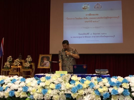 ที่หอประชุมอาชาสีหมอก ศาลากลางจังหวัดสุพรรณบุรี นายทรงพล ใจกริ่ม รองผู้ว่าราชการจังหวัดสุพรรณบุรี เป็นประธานเปิดการฝึกอบรม “ โครงการไทยนิยม ยั่งยืน ปลอดยาเสพติดจังหวัดสุพรรณบุรี ประจำปี 2561”
